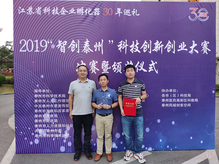 在大眾創(chuàng)業(yè),萬眾創(chuàng)新的號召下,公司積極報名參加2019年“智創(chuàng)泰州”科技創(chuàng)新創(chuàng)業(yè)大賽暨第七屆“創(chuàng)業(yè)江蘇”科技創(chuàng)業(yè)大賽,經(jīng)過專家評審、復賽篩選等環(huán)節(jié)成功晉級進入決賽。