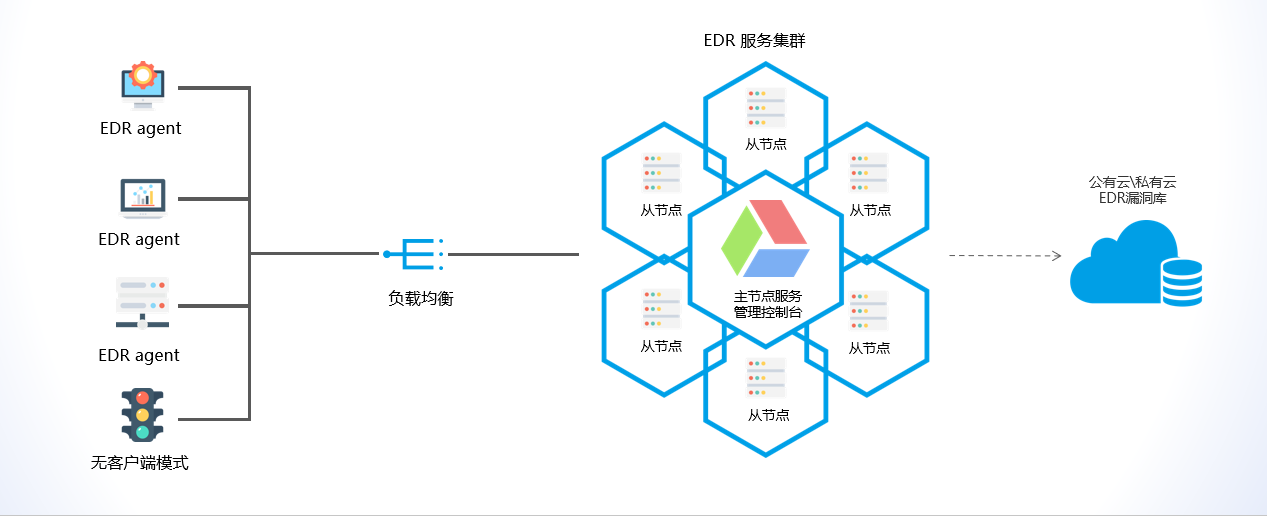 云涌EDR 通過輕量級(jí)代理程序上報(bào)端點(diǎn)側(cè)系統(tǒng)日志及應(yīng)用數(shù)據(jù),借助平臺(tái)的漏洞庫(kù)比對(duì)、大數(shù)據(jù)分析及態(tài)勢(shì)感知能力,有效幫助安全團(tuán)隊(duì)實(shí)時(shí)掌握終端設(shè)備安全狀況,有效阻止APT等高級(jí)威脅與攻擊。
