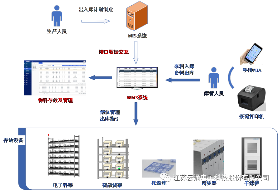 ? ? ? 此外,云涌科技擁有自己的倉庫管理設備,通過與WMS系統軟件相結合,可以實現整個倉儲管理流程: