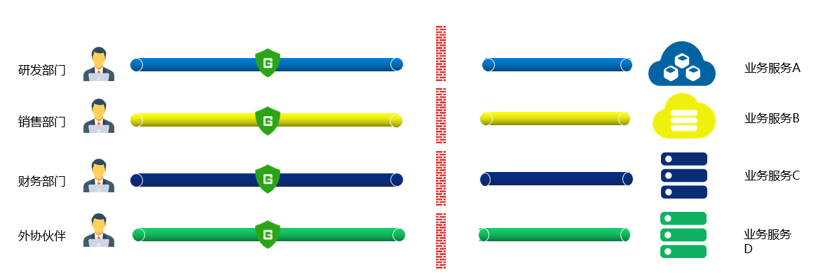 1、本公司員工與外部合作單位的員工需要組網遠程協作,出于安全考慮又不能讓外部員工遠程接入本公司的內部網絡,如何能保證協作業務的微邊界隔離訪問?