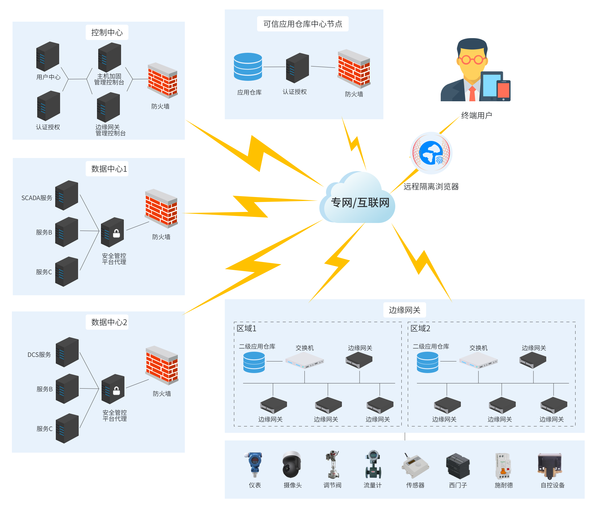 基于零信任的云邊端管控系統整體網絡拓撲圖