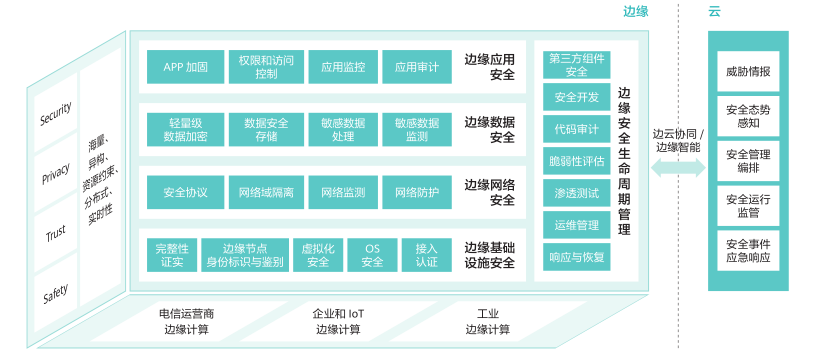 邊緣安全是邊緣計算的重要保障。邊緣安全涉及跨越云計算和邊緣計算縱深的安全防護(hù)體系,只有增強(qiáng)邊緣基礎(chǔ)設(shè)施、網(wǎng)絡(luò)、應(yīng)用、數(shù)據(jù)識別和抵抗各種安全威脅的能力,才能為邊緣計算產(chǎn)業(yè)的發(fā)展構(gòu)建安全可信環(huán)境。邊緣安全的核心價值體現(xiàn)在可以提供可信的基礎(chǔ)設(shè)施:主要包括計算、網(wǎng)絡(luò)、存儲類的物理資源和虛擬資源。基礎(chǔ)設(shè)施是包含路徑、數(shù)據(jù)交互和處理模型的平臺面,可以應(yīng)對鏡像篡改、DDoS 攻擊、非授權(quán)通信訪問、端口入侵等安全威脅。