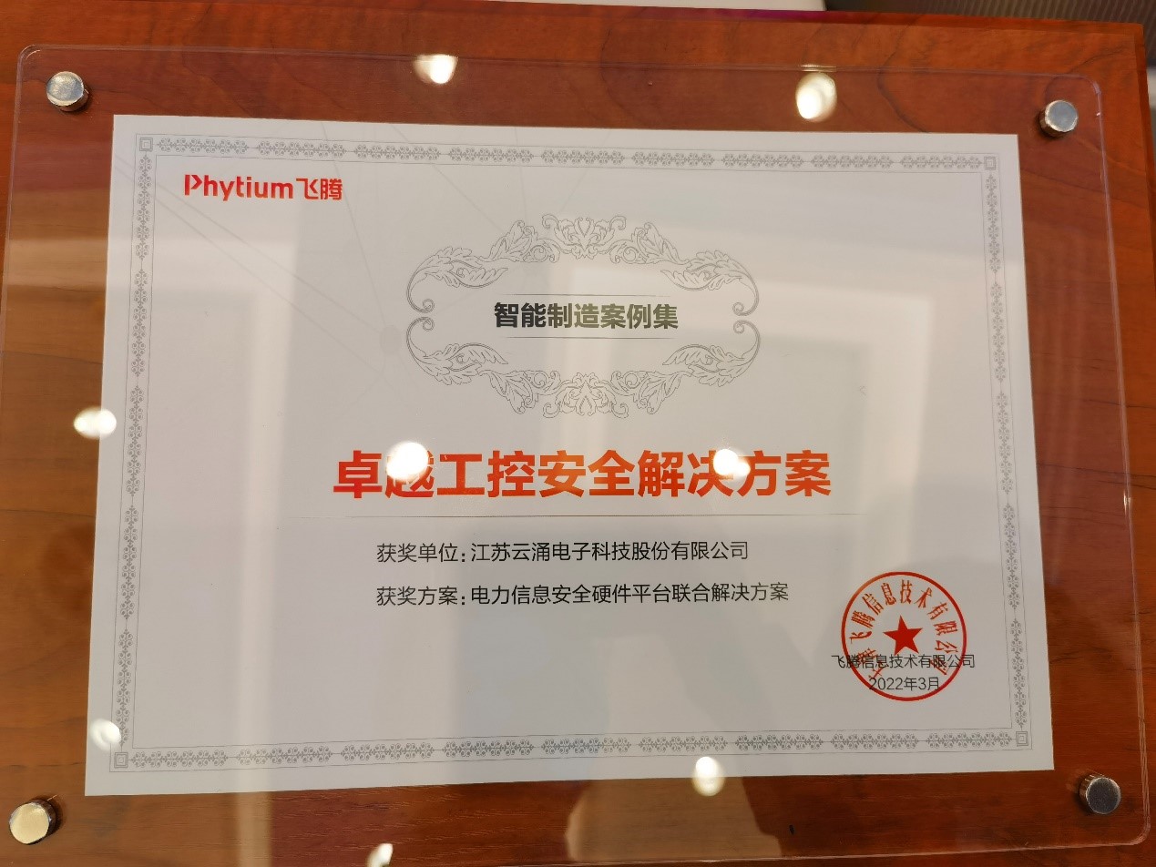 在同期舉辦的“工控和工業軟件產品、解決方案和創新應用案例展示”活動中,飛騰新品E2000的正式介紹發布,云涌科技《電力信息安全硬件平臺聯合解決方案》榮獲“卓越工控安全解決方案”的稱號,入選智能制造案例集。