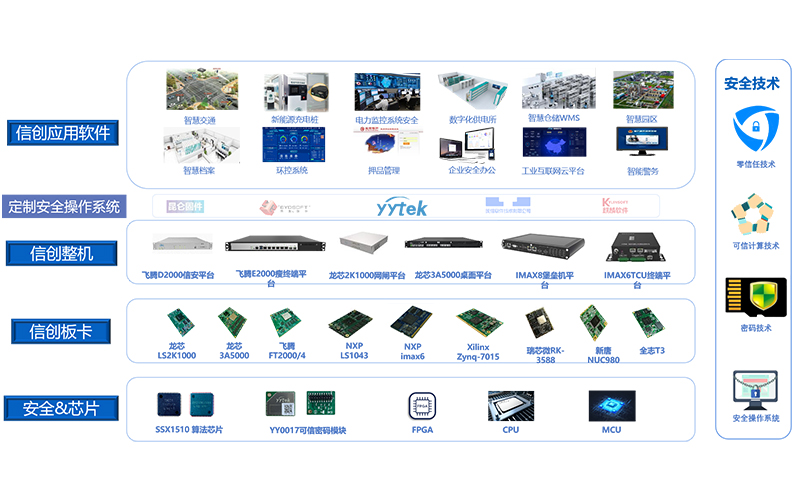 截止到目前,云涌科技已經形成了從底層安全芯片到嵌入式板卡、整機設備、行業解決方案的全棧信創架構體系,基于零信任、可信計算、密碼技術等安全方案,打造出自主研發安全可控的“云涌嵌入式技術開發平臺”。同時,針對電力行業,實現了一系列國產化自主可控工業安全產品的廣泛應用,這也是信創落地的標志性成功案例。