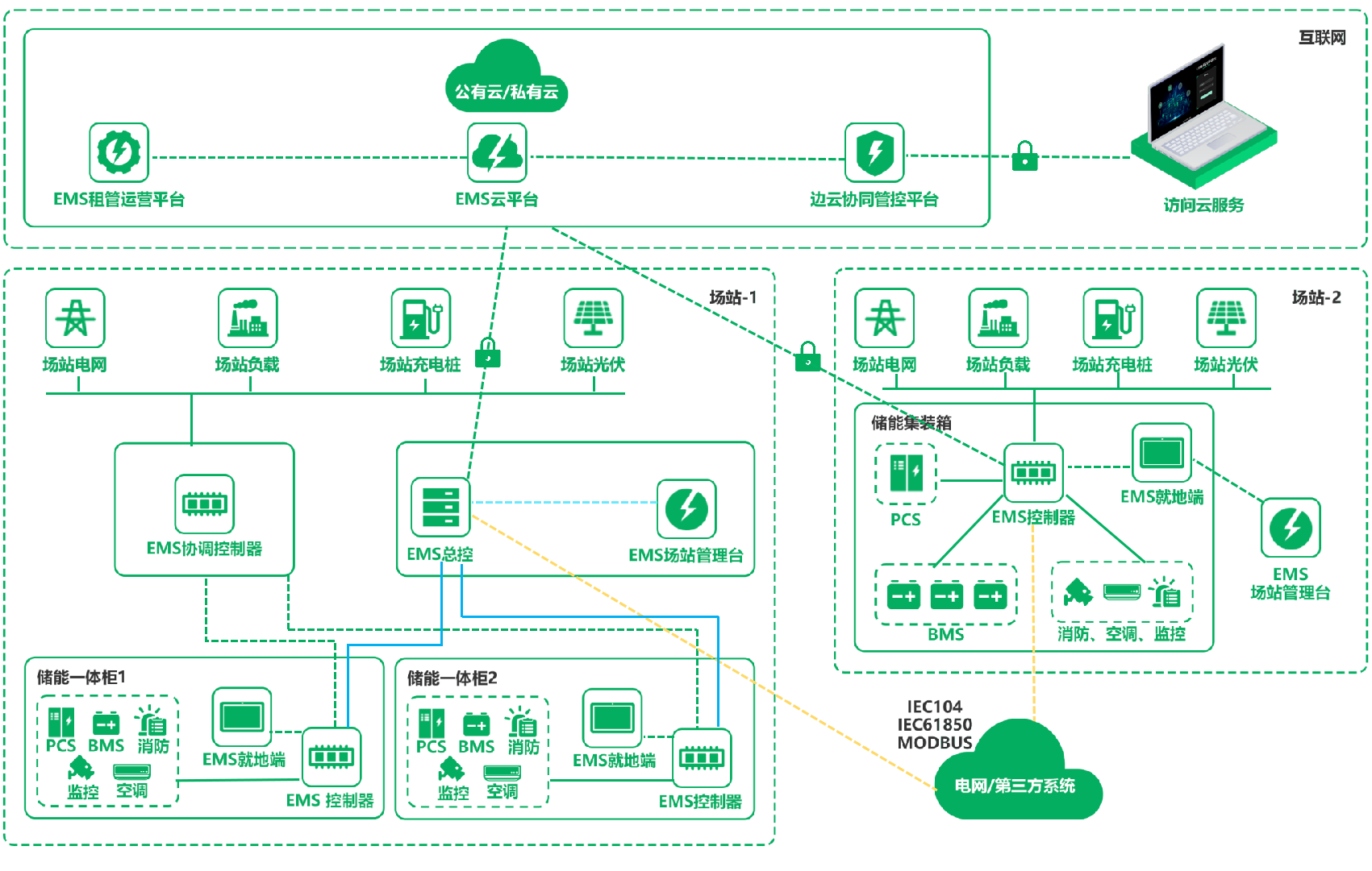 在智慧能源領域,云涌科技致力于EMS定制開發多年,產品以標準的基于邊緣計算的物聯網平臺為底座,采用微服務軟件架構,利用四遙技術對儲能設備進行實時的數據采集與控制,并通過大數據技術對場站的能耗數據進行分析及預測,幫助企業實時了解整個場站電力系統的運行狀況,從而結合系統策略,實現對儲能系統各個設備的全生命周期管理。