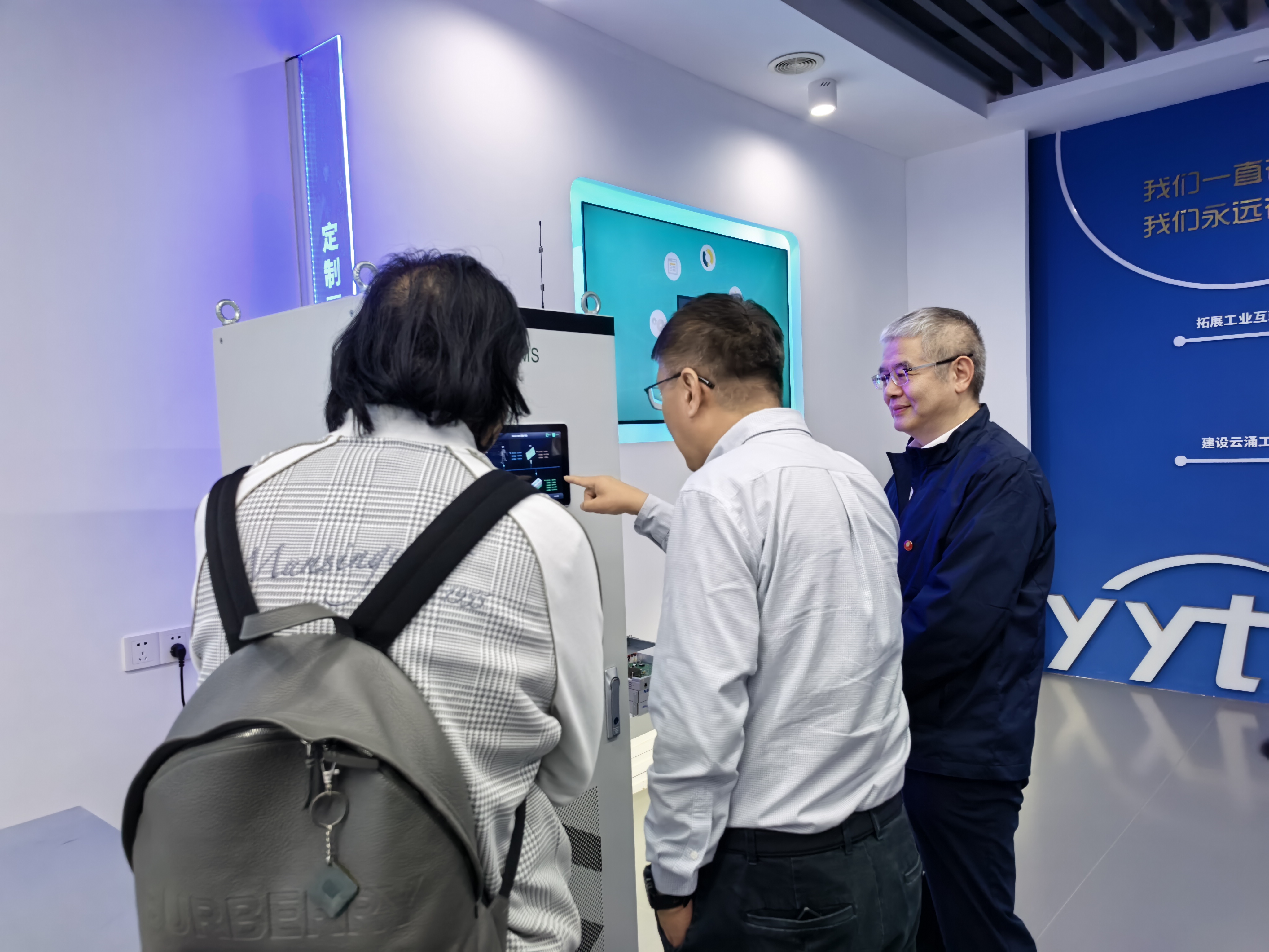 考察期間,胡偉武董事長一行先后走訪了云涌科技展廳、實驗驗證中心及制造中心,實地察看智能料倉、SMT 貼片、DIP 插件、整機組裝與成品測試等全流程生產環節。在制造中心,詳細了解了公司的生產調度體系、質量管控標準及工廠信息化建設情況,對云涌科技在硬件制造領域的規范化管理與技術實力給予高度評價,尤其贊賞了公司在生產效率、質量把控及數字化轉型方面取得的顯著成效。