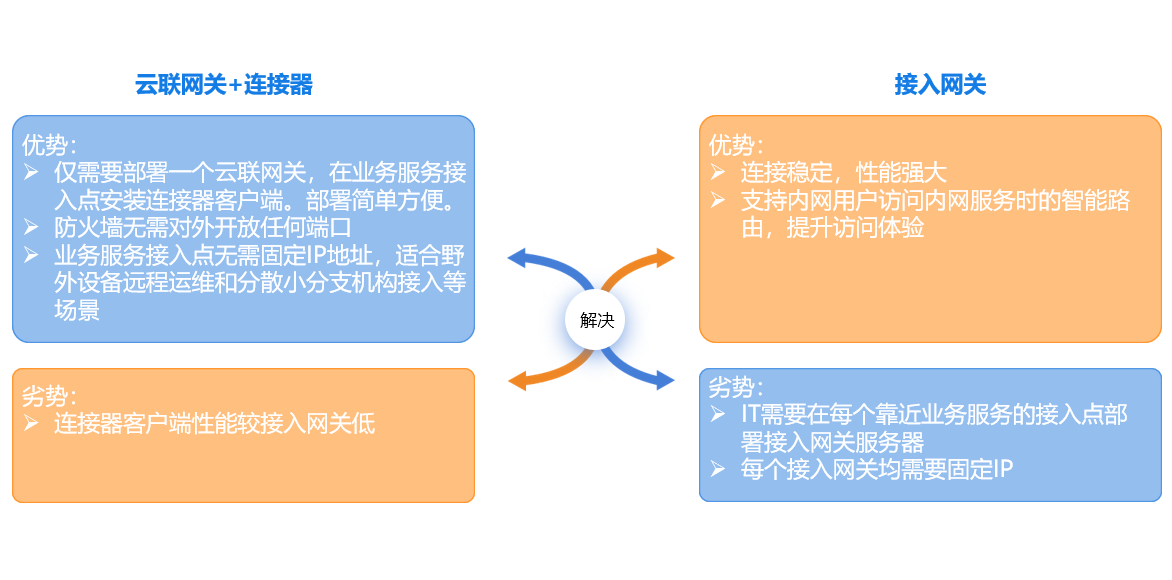 云涌零信任支持兩種內網訪問模式:基于接入網關的訪問代理,以及基于云聯網關+連接器的內網穿透。客戶可以根據自身IT架構及實際需求選擇適合的服務訪問模式。兩種模式可以同時存在。