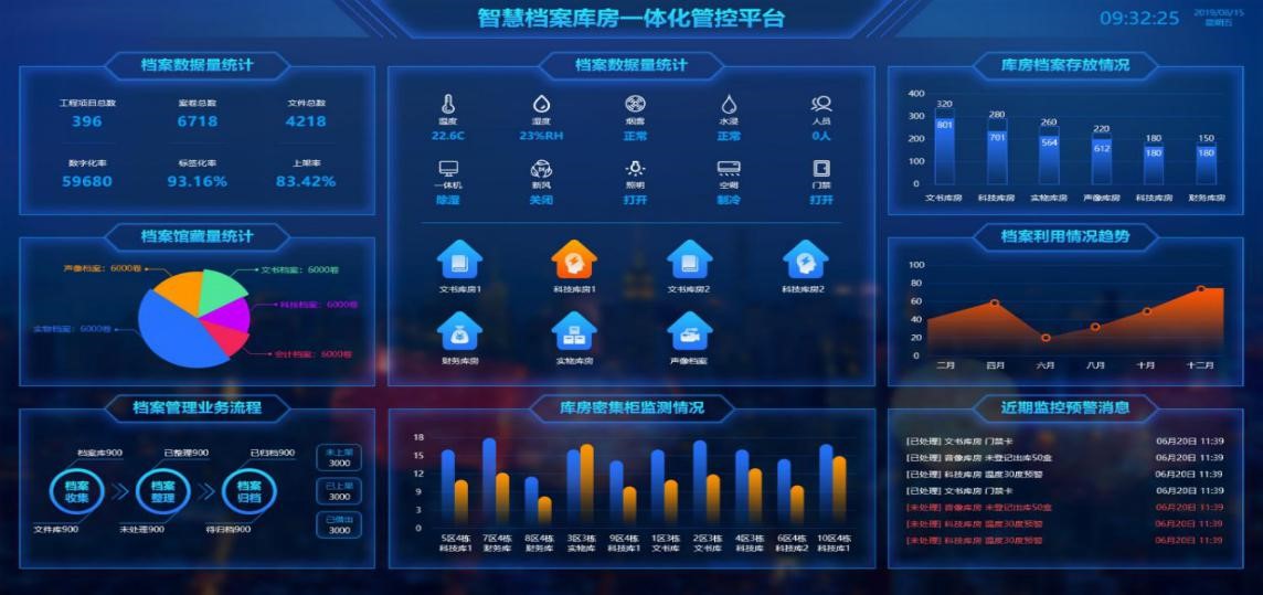 云涌檔案一體化管控平臺,集成了物聯網云平臺、低功耗的物聯網通信技術,環境監控系統,底層傳感器采集,電機控制,結構設計等技術,利用云平臺的處理能力和存儲技術,構成一個一體化、網絡化的集中監控系統,提高日常維護效率,降低勞動強度和人工成本。
