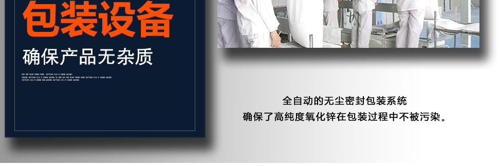 大連金石氧化鋅有限公司全部選用最優(yōu)質(zhì)的0#鋅錠(含鋅量≥99.995%)為原材料,將金屬鋅錠通過高溫加熱至1300℃,使鋅錠熔融汽化后導(dǎo)入到熱空氣中進(jìn)行氧化。然后,經(jīng)冷卻、旋風(fēng)分離,將細(xì)粒子用捕集器進(jìn)行收集。最后,通過采樣、化驗、分析對成品氧化鋅進(jìn)行分級包裝。